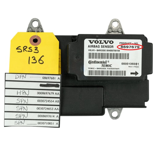 To read the software numbers from your SRS module you will need a specialized tool like Autologic, Snap-On or VIDA, or give us your vehicle’s VIN number and we can tell you what software package is in your module.